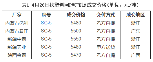 據(jù)找塑料網(wǎng)成交數(shù)據(jù)顯示(見表1),今日國內(nèi)PVC市場整體成交價格小幅拉漲。期貨價格走高,帶動場內(nèi)交投氛有所好轉(zhuǎn)。低端貨源減少,高端貨物出貨受阻。今日5型電石料華東市場成交價格5330-5450元/噸自提,華南主流成交價格5350-5430元/噸自提,更高價格存在。
