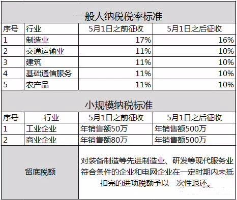 從2018年5月1日起,制造業(yè)納稅標(biāo)準(zhǔn)將從17%降到16%。