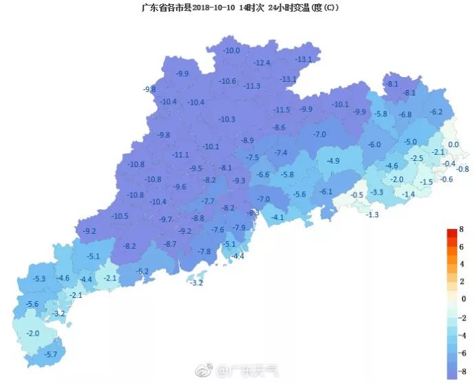 整個(gè)廣東省溫度都在降