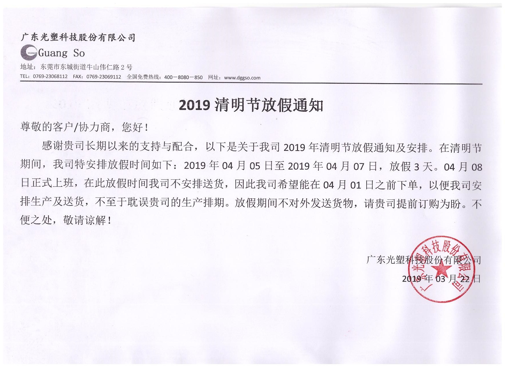 文章標(biāo)題:關(guān)于2019年清明節(jié)放假通知