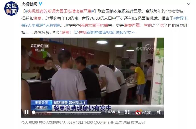 最近央視痛批“大胃王”為了吸引關(guān)注浪費糧食。如今短視頻APP上的“大胃王”吃播正在驟減,糧食問題再度成為大眾的關(guān)注點。