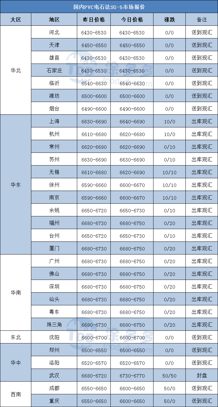 PVC市場主流成交價(jià)格小幅上漲,實(shí)際出貨維持前期