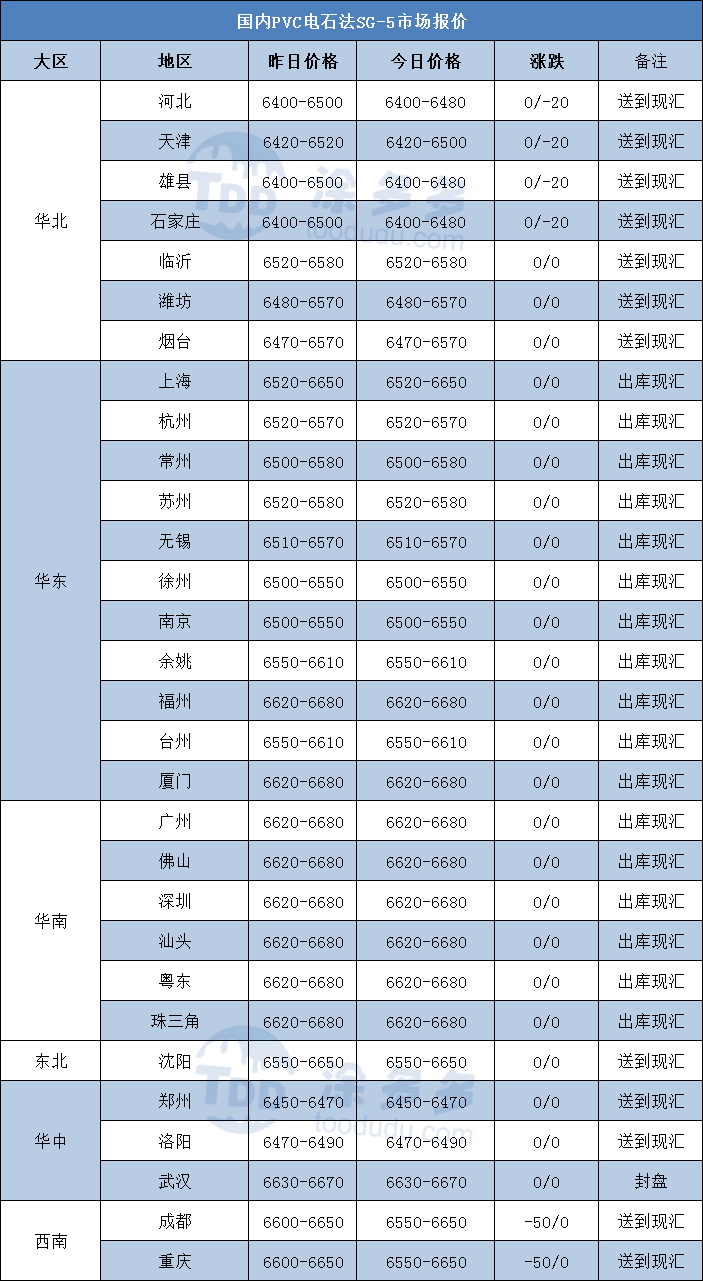 PVC市場主流成交價格大局持穩(wěn),小部分價格調(diào)整,成交維持前期