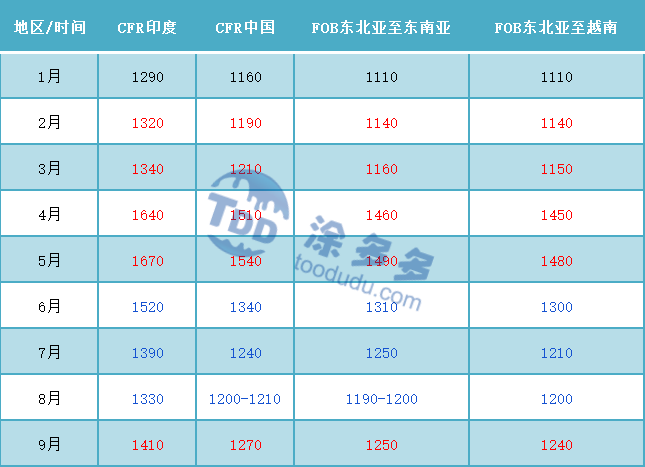 中國臺灣臺塑公布9月PVC預(yù)售報價,漲幅略低于此前預(yù)期,CFR中國上漲60美元/噸在1270美元/噸,CFR印度上漲80美元/噸在1410美元/噸。