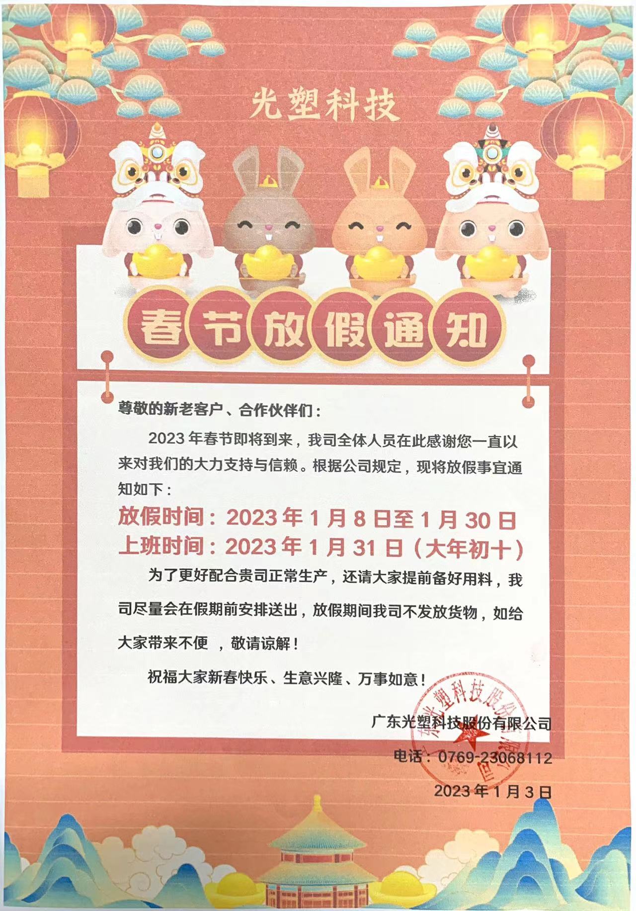 文章標(biāo)題:2023年春節(jié)放假通知